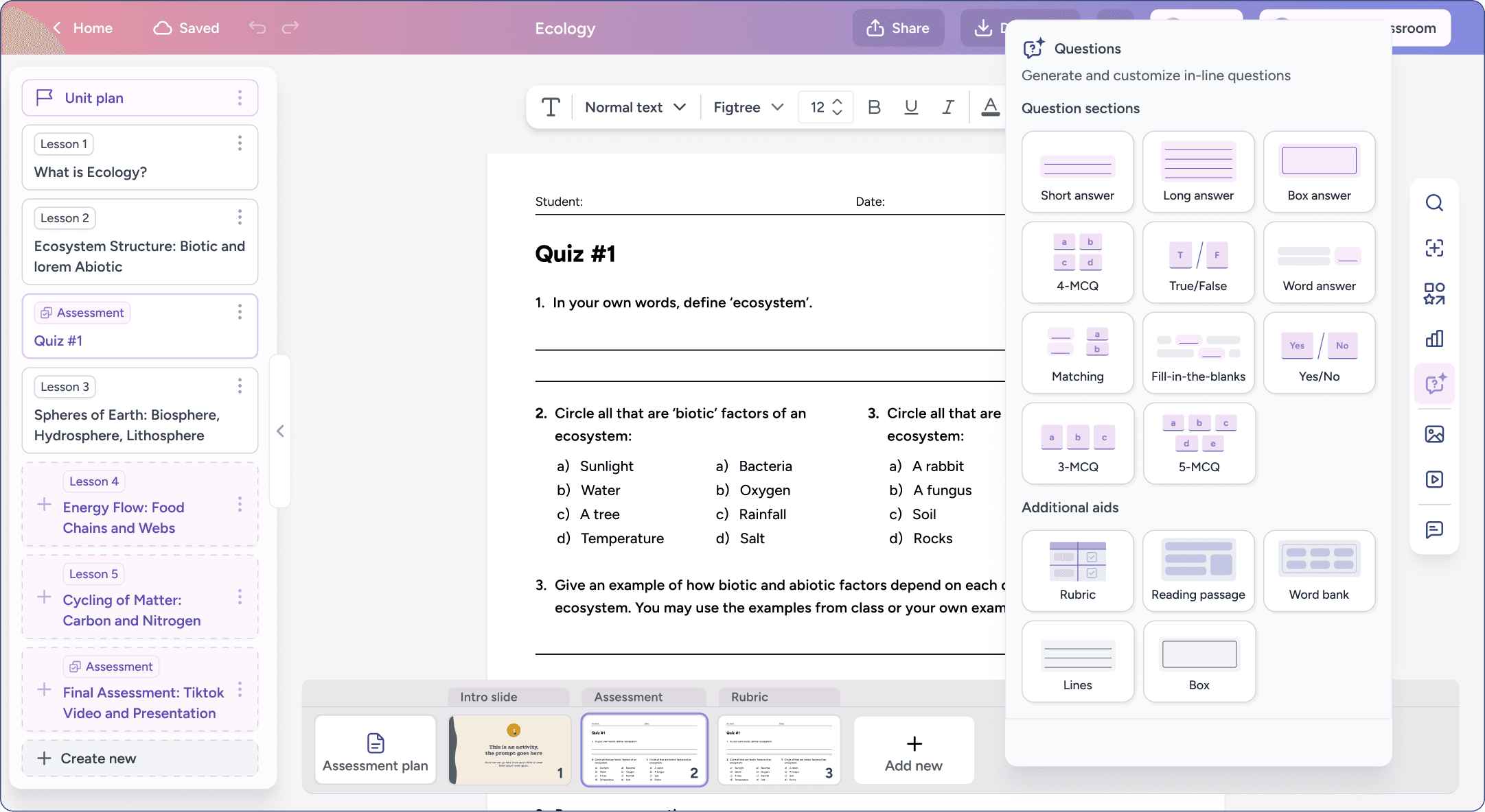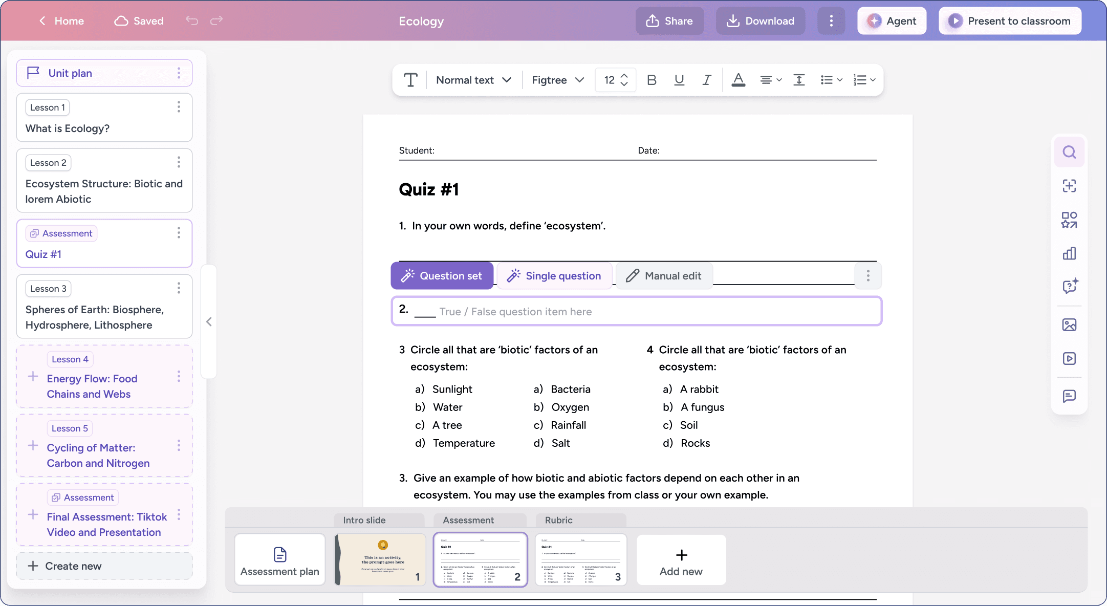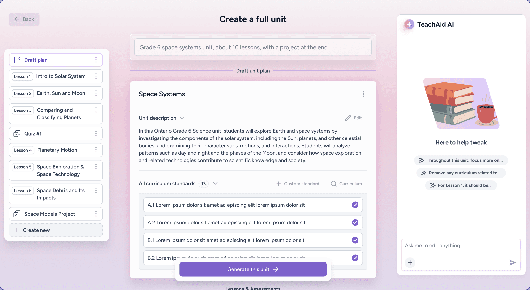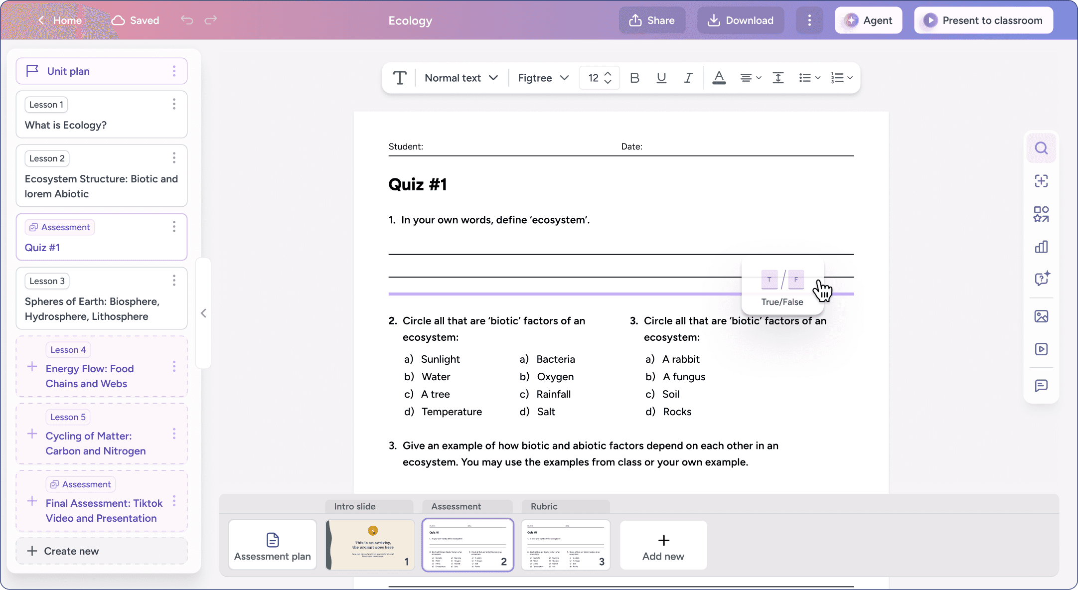As a result, units function as living artifacts that evolve over time. Teachers can explore ideas, make conceptual shifts within a lesson, and fine-tune individual slides and worksheets at any moment.