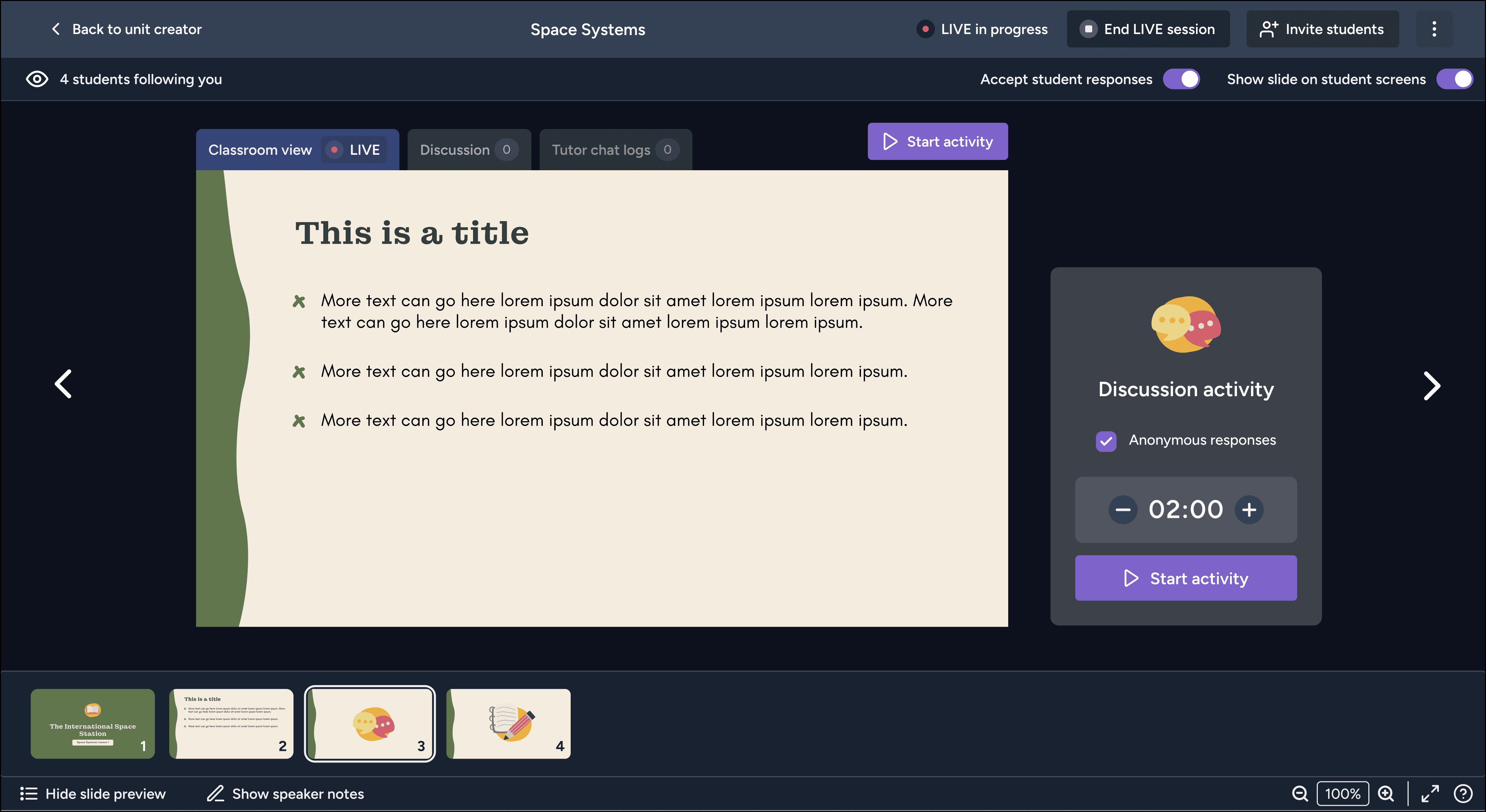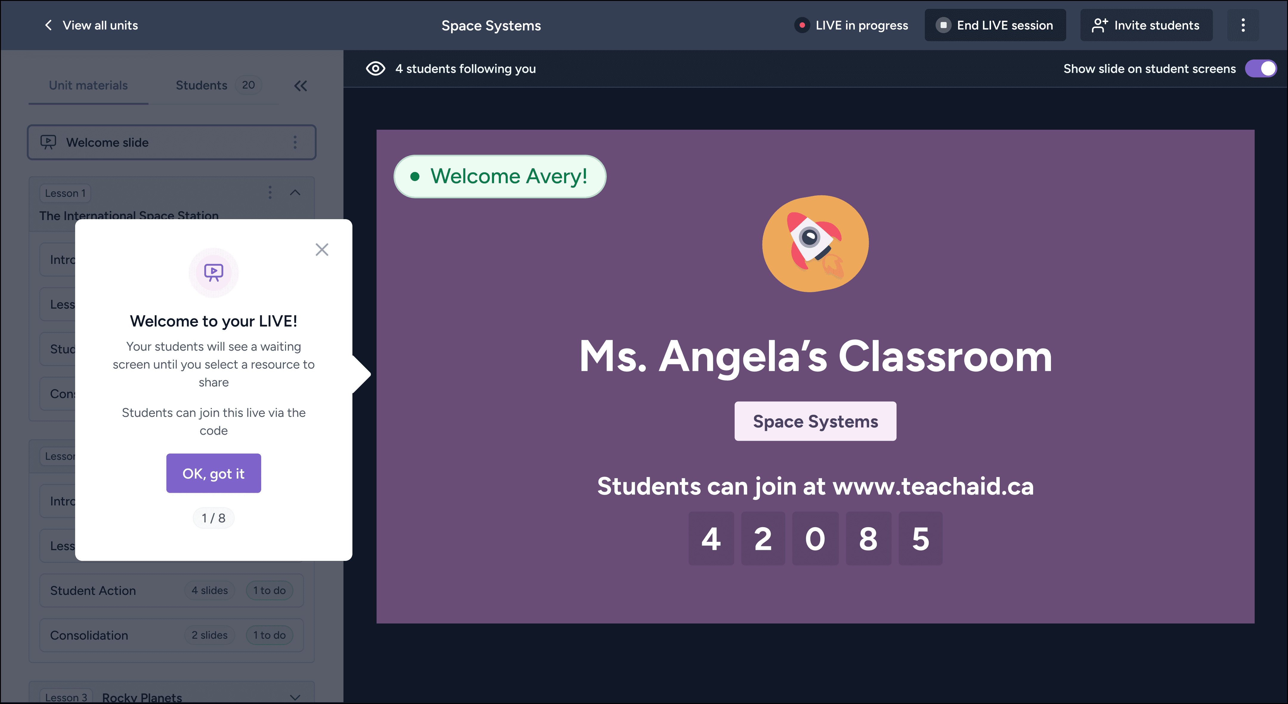 Our interactive classroom feature is undergoing a massive redesign to align with our more recent updates. Beyond that, we aim to add additional interactive teaching elements such as polls, wordclouds, whiteboard activities, AI-driven suggested activities, and more.